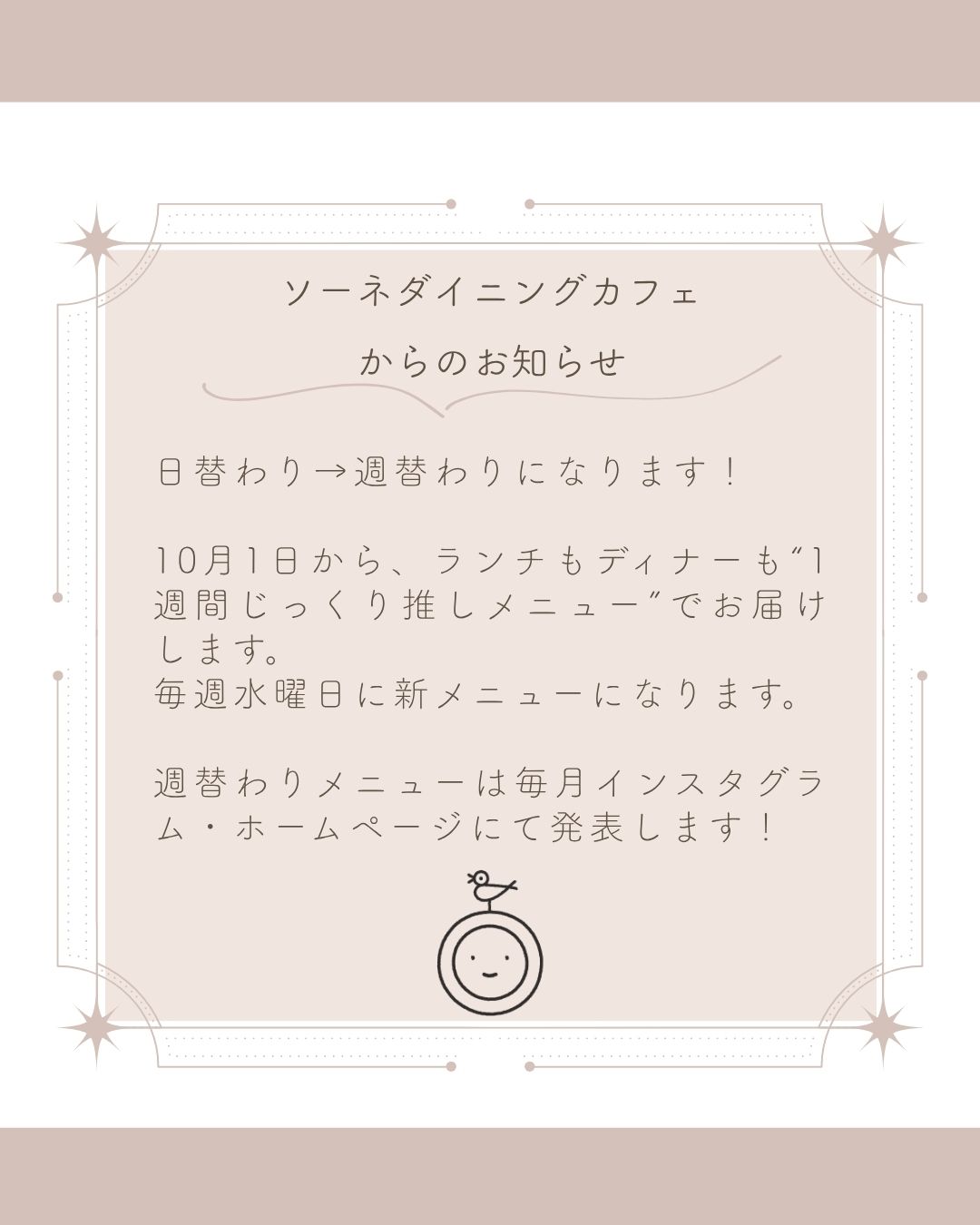 ソーネダイニングカフェからのお知らせ